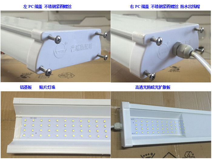 一、食品類企業對照明要求 衛生:衛生是食品行業的一個重要參數,明亮的環境締造出潔凈的形象,黑暗不均勻的區域創造出不良形象。 高光照度:HACCP要求食品生產工廠各區域照度標準要求為,車間內加工操作臺的照度不低亍220 Lux(出口企業操作臺照度寵戶標準不低亍500LUX, ),車間其它區域不低于110 Lux,檢驗工作場所工作臺面照度不低亍550 Lux,瓶裝液體產品的燈檢工作點照度不低亍1000 Lux。 高顯色性、高均勻度:光線不能改變被加工物的本色、不能產生光斑 具備防護性:食品加工時用水量大、空氣濕度高,易產生凝結水,要采用防水防潮型燈具。傳統的日光燈組成材料是玻璃、水銀等,萬一破損會污染食品,LED三防燈是全密封的燈具無有害物質,最適合食品行業使用。 節能:食品加工行業的工場很多是長時間運作,有些甚至全天24小時,采用LED節能燈具能減少電力消耗,降低企業生產成本。 二、一體化LED三防燈產品規格及特點 高亮度:普瑞斯LED三防燈燈采用高效LED芯片以及高導熱材料板制造而成,1米中心照度比傳統三防燈(2×36W)高15%。 顏色純正、光照均勻:普瑞斯LED三防燈光顯色性可達Ra70以上,無光斑,光效更好。高顯色性光源易區分食品可能性混入的雜物。 安全:普瑞斯LED三防燈的主體采用阻燃PVC、無毒、不易碎;不含水銀、鎘等有害物質;不產生紅外、紫外輻射,防水等級IP65以上,可直接用高壓水槍沖洗。 三、食品廠專用led三防燈結構圖 四、1.2米led三防燈包裝