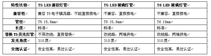 三種LED T5燈管對(duì)比