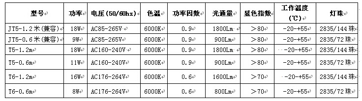 LED t5玻璃燈管技術(shù)參數(shù)
